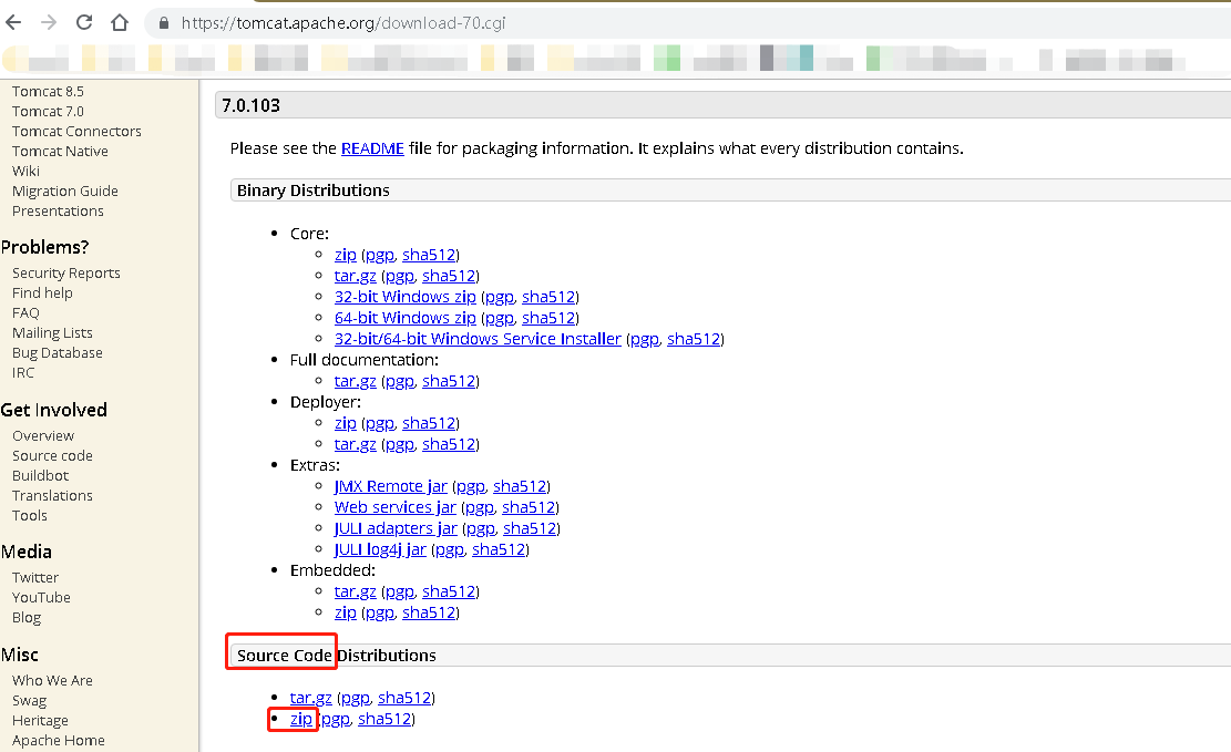 2)选择你想要编译运行的tomcat源代码的版本并下载(本文使用tomcat7源码)